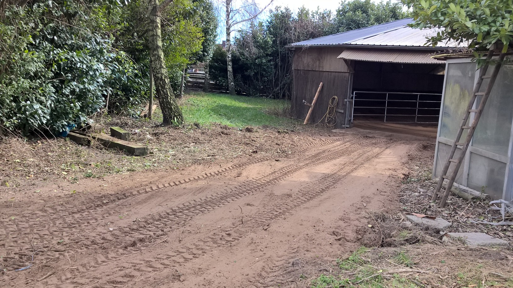 Bitte zum hinteren Eingang fahren wo noch die Stützen der Bewegungshalle stehen